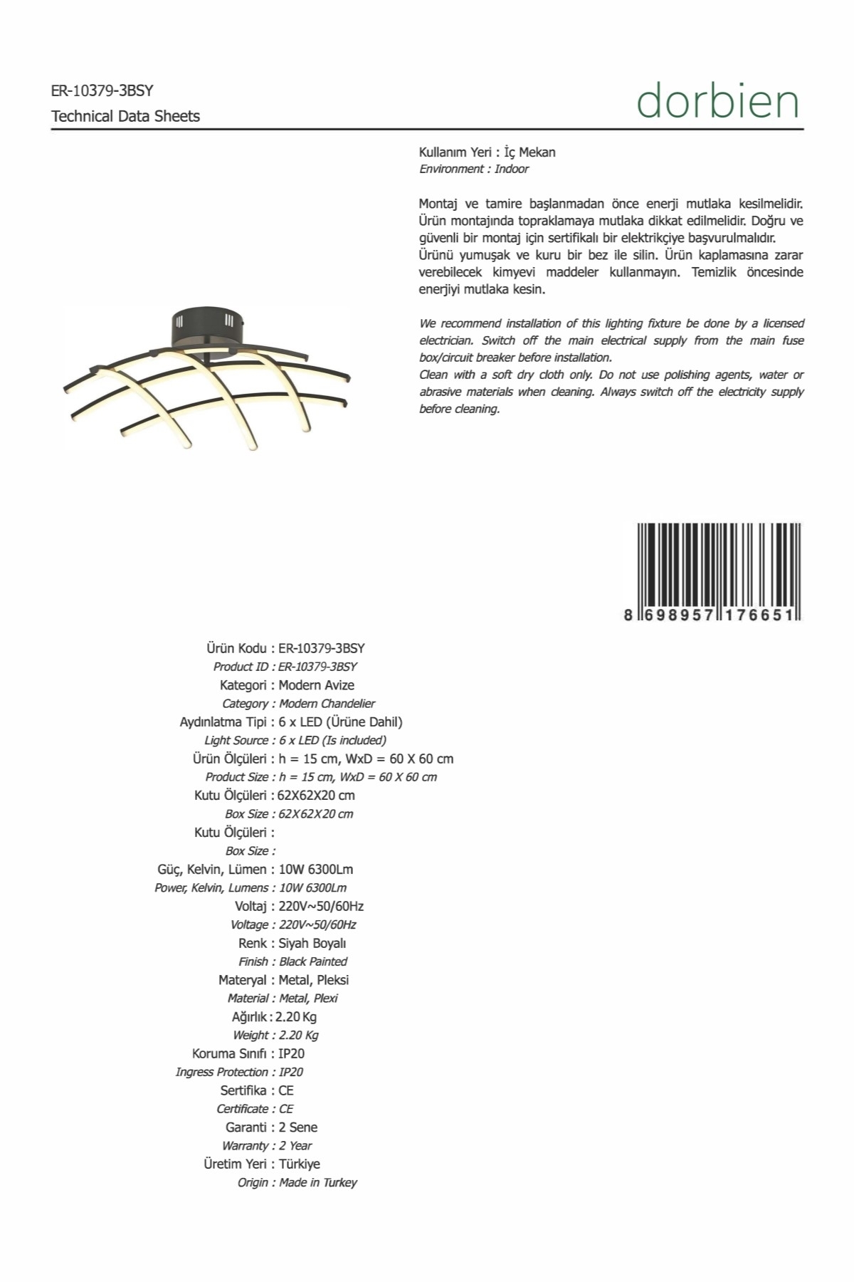Stok kodu: ER-10379-3BSY Kategoriler: Avize, Modern Avize Marka: Dorbien